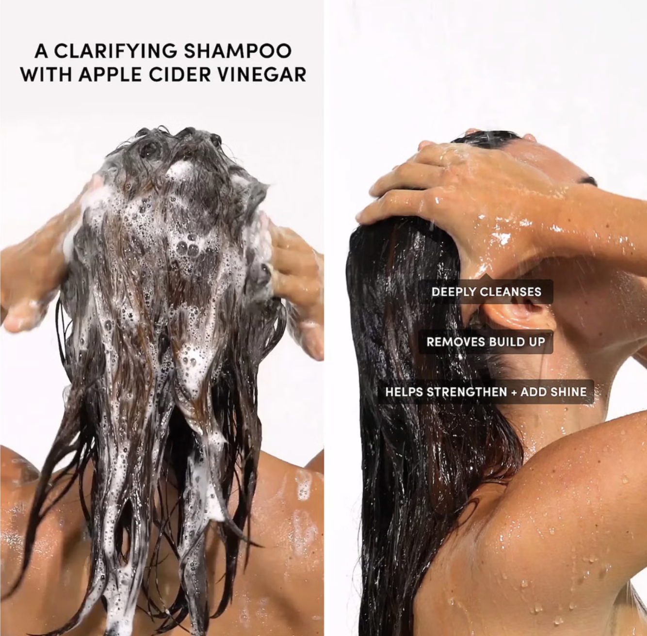 This clarifying shampoo deeply cleanses away dirt, oil, and product buildup with detoxifying apple cider vinegar and hair-strengthening keratin.